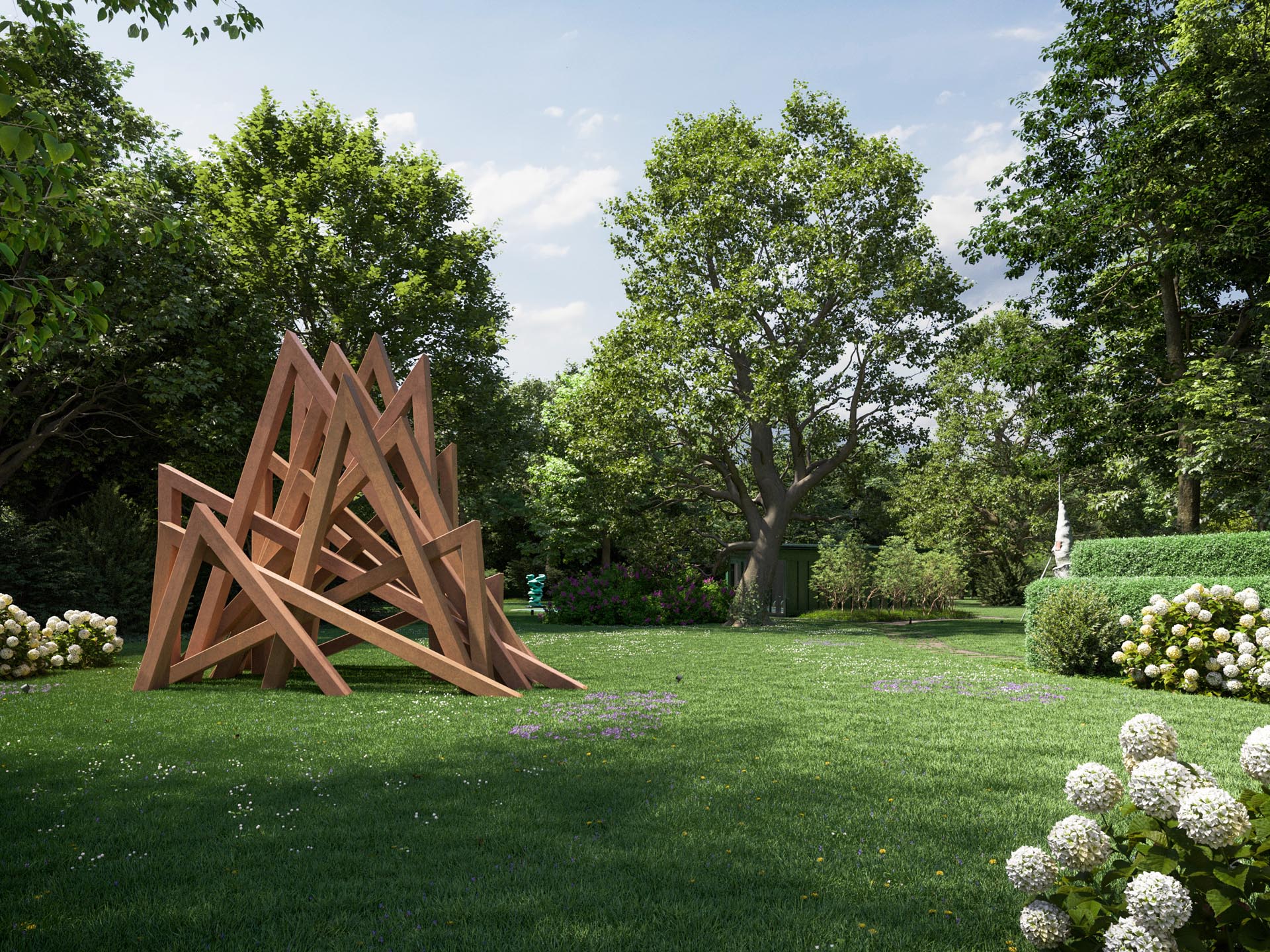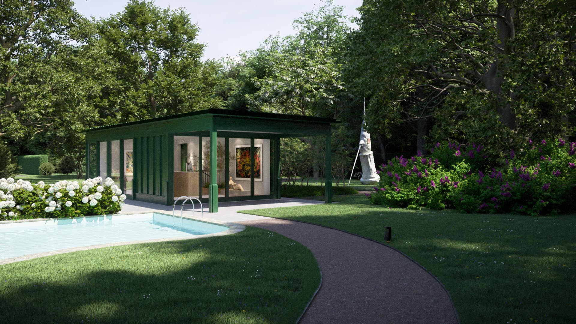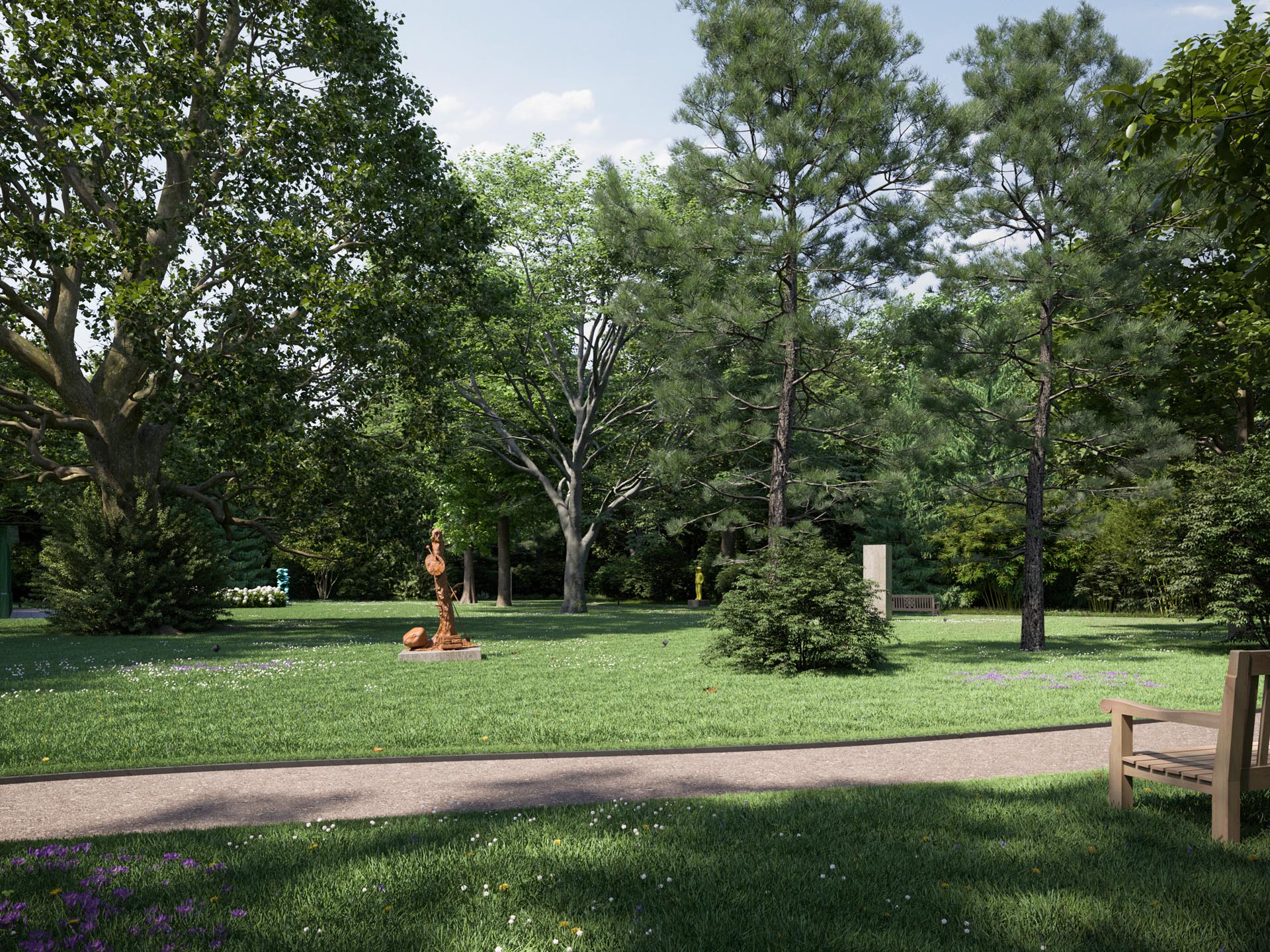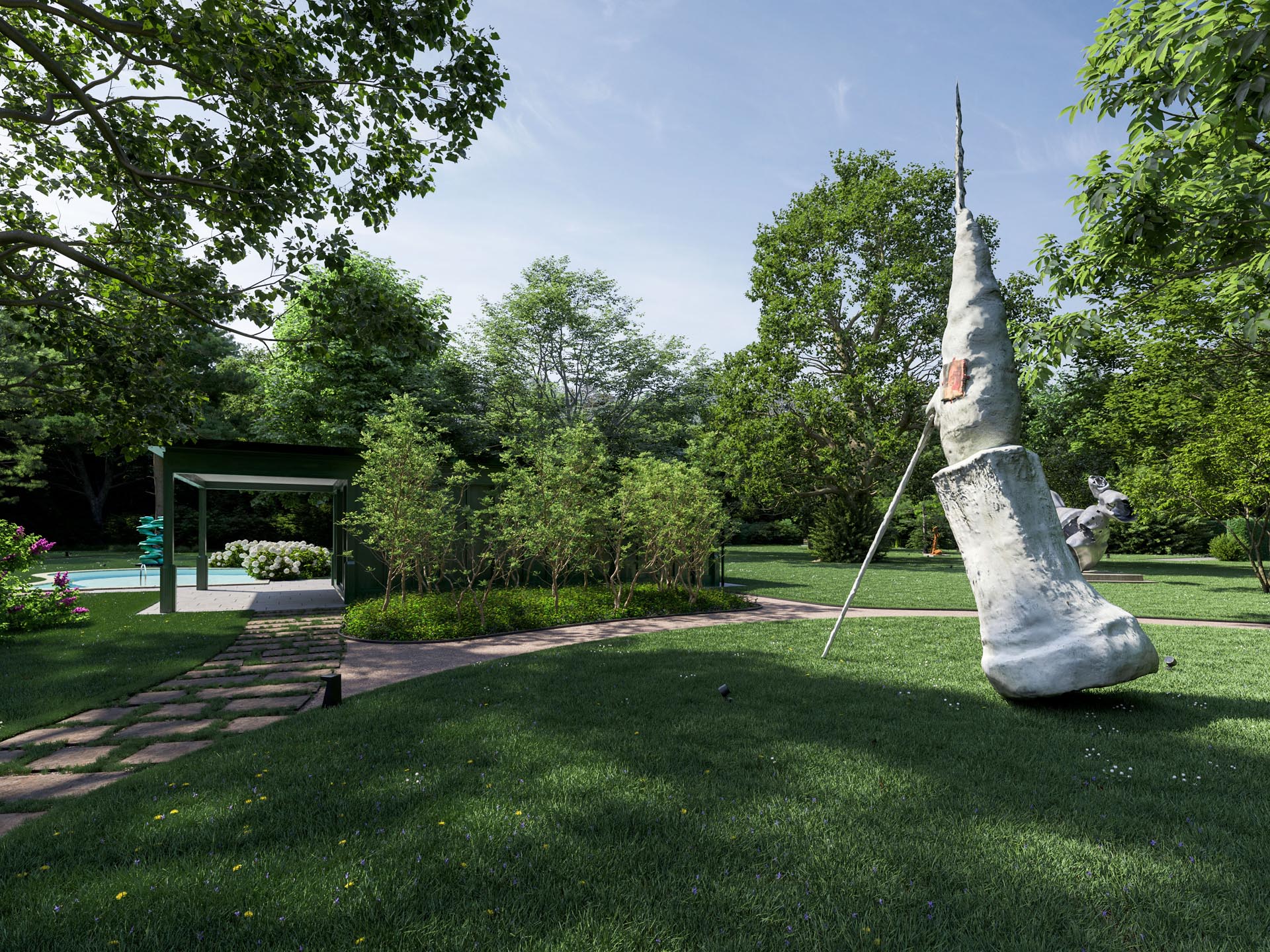 Wer in einer der nur fünf Residenzen von CHAMI 9 lebt, muss diesen Kompromiss nicht eingehen. Sie haben zwar das Privileg, den weitläufigen, mit der Stadtvilla verbundenen, einmaligen Skulpturenpark zu nutzen. Die professionelle Pflege von Park und Pool sowie die Organisation der Kunstwerke aber übernimmt die Familie Schmitz als Betreiber.