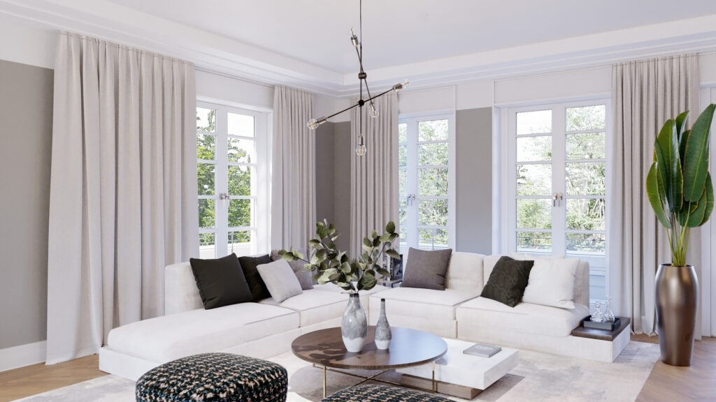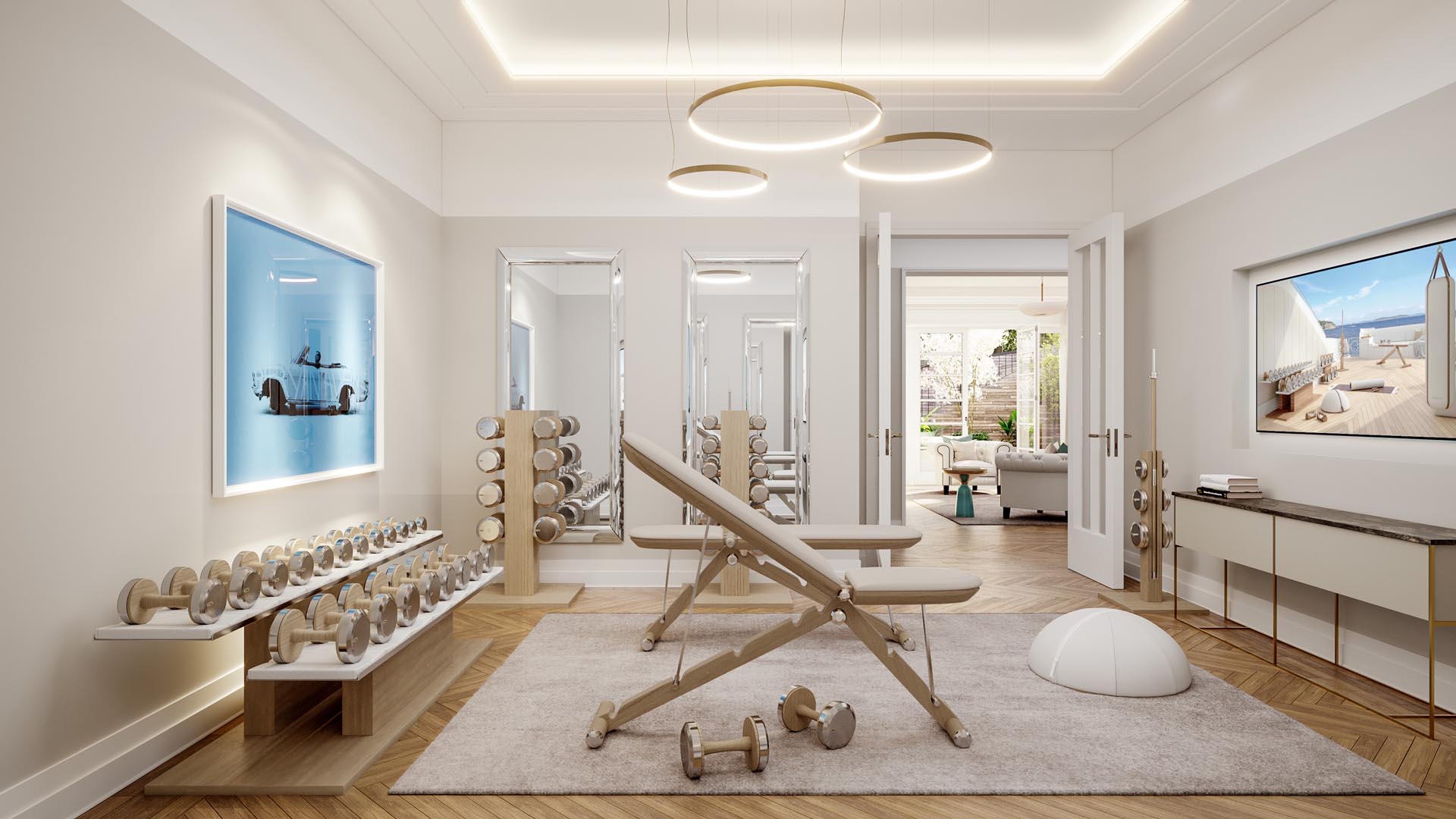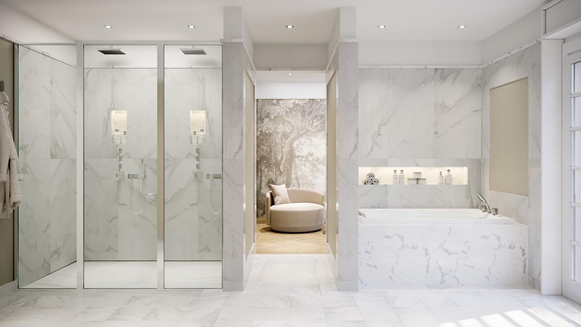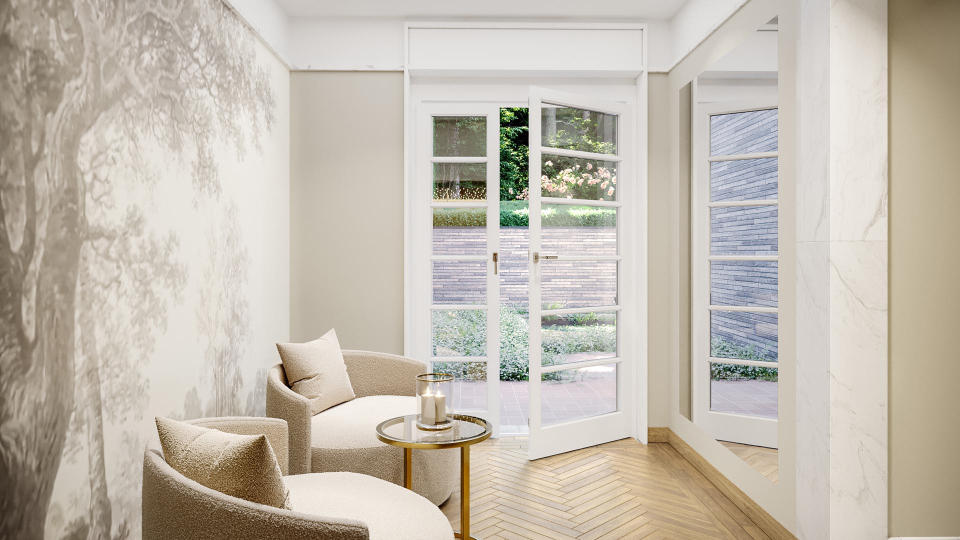 Residence N° 4 ist ein Refugium von zeitloser Eleganz, ein Ort, der die Seele ebenso anspricht wie den Verstand. Gelegen im ersten Obergeschoss, öffnet diese Wohnung ihre großzügigen Räume zu einem Lichtspiel aus Fenstern und Balkonen, das den Blick auf den New Sculpture Park mit seinem altehrwürdigen Baumbestand freigibt.